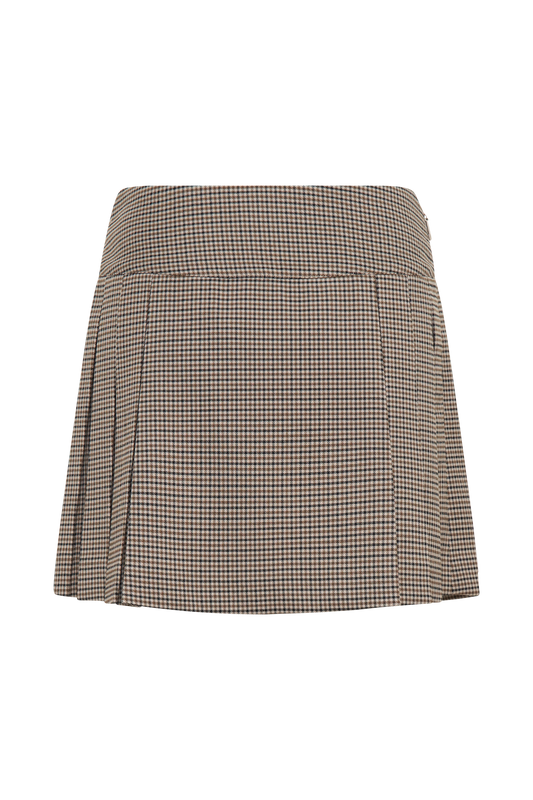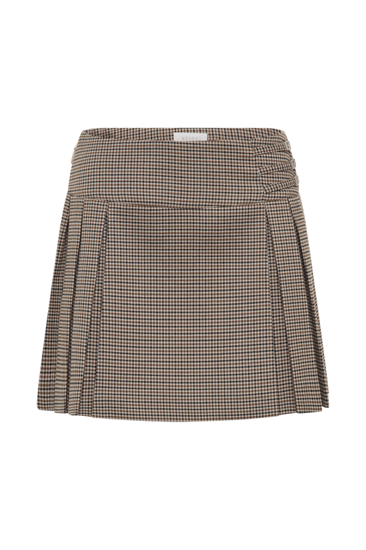 Pleated Buckle Mini Skirt - Tan Check