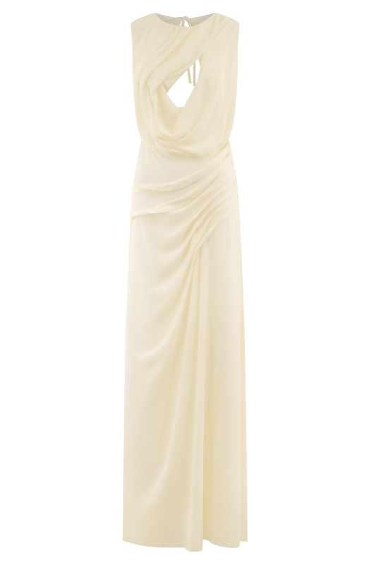 Esther Iridescent Satin Cowl Maxi Dress - Lemon Sorbet