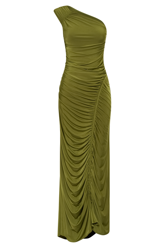 Capri Gathered Slinky Maxi Dress - Vintage Olive