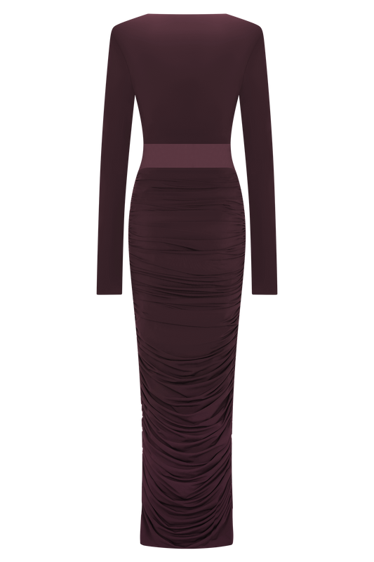 Louanne Slinky Long Sleeve Maxi Dress - Burgundy