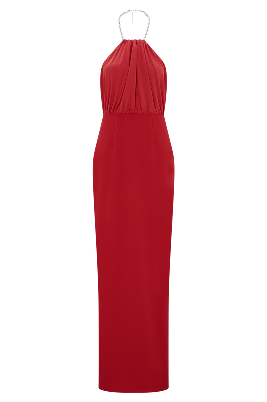 Marlon Crepe And Mesh Maxi Dress - Cherry Red