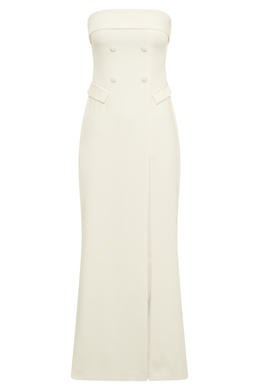 Abbie Strapless Suiting Maxi Dress - Ivory