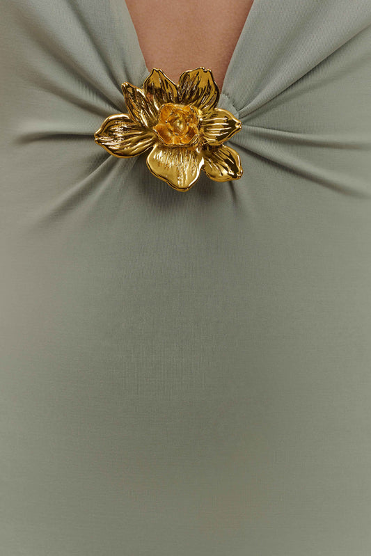 £95-20% Off Sale price £76Unit price / per20% OFF AT CARTBeck Plunge Maxi Dress With Floral Hardware - Basil