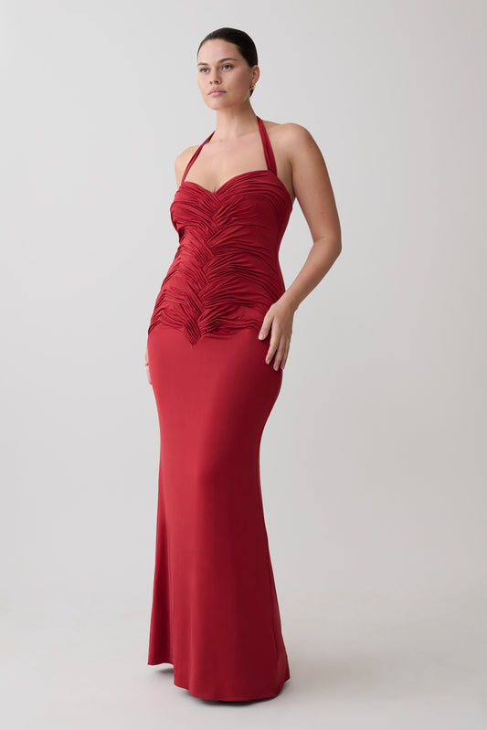 Hoai Gathered Slinky Halter Maxi Dress - Deep Red
