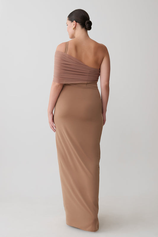 Ryn Twisted One Shoulder Maxi Dress - Dark Chocolate