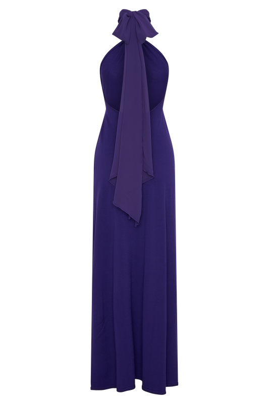 Ozias Halter Semi Sheer Knit Maxi Dress - Deep Purple