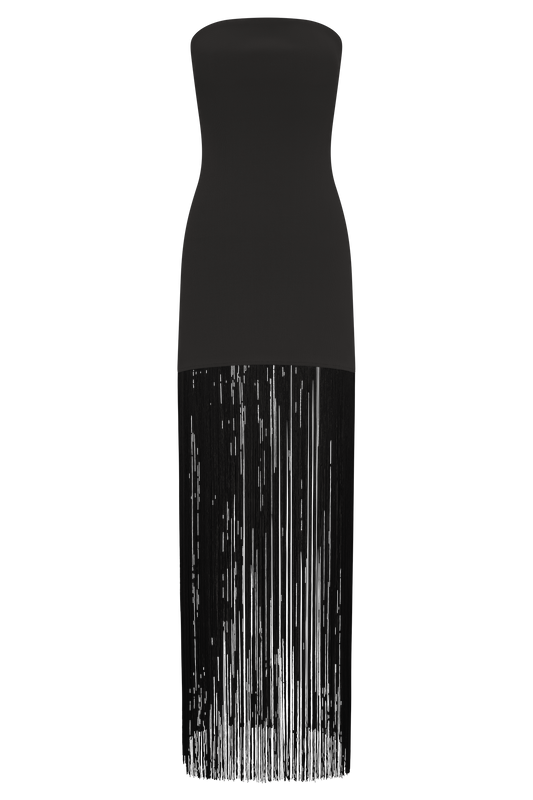 Koah Fringe Bandage Knit Maxi Dress - Black