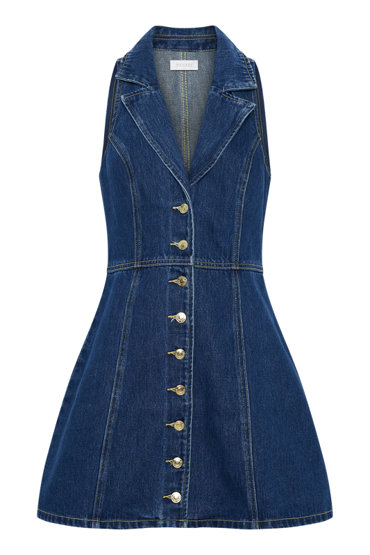 Eugenie Collared Denim Mini Dress - Dark Blue