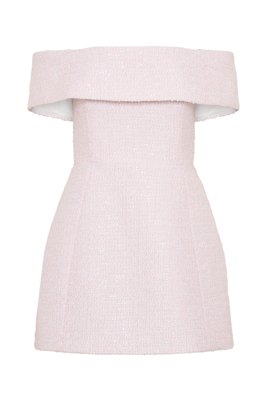 Helena Tweed Off Shoulder Mini Dress - Pink