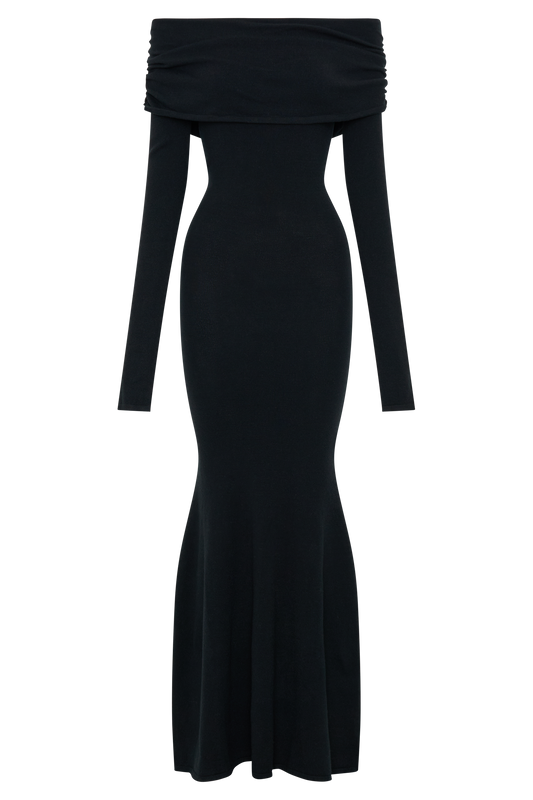 Georgiana Off Shoulder Knit Midi Dress - Black