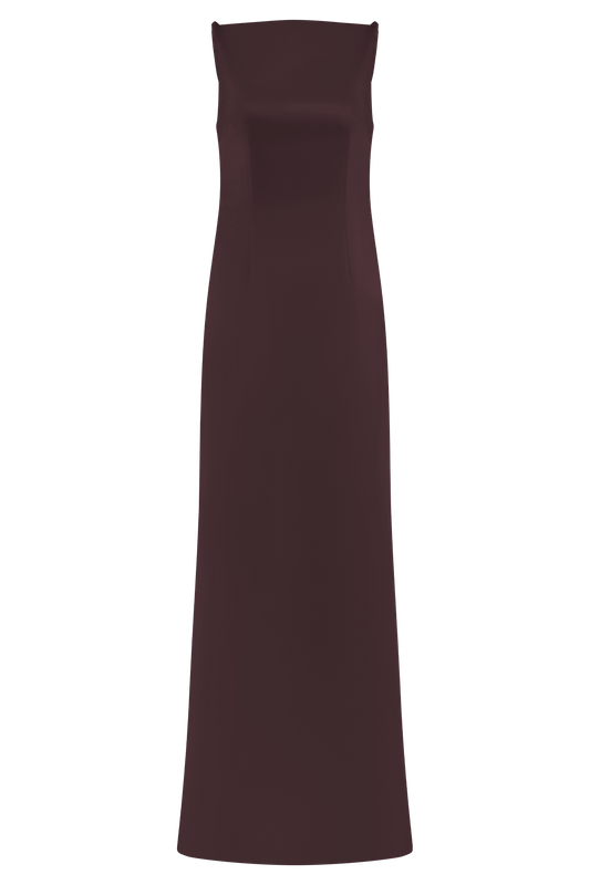 Violet Sleeveless Satin Maxi Dress - Dark Chocolate