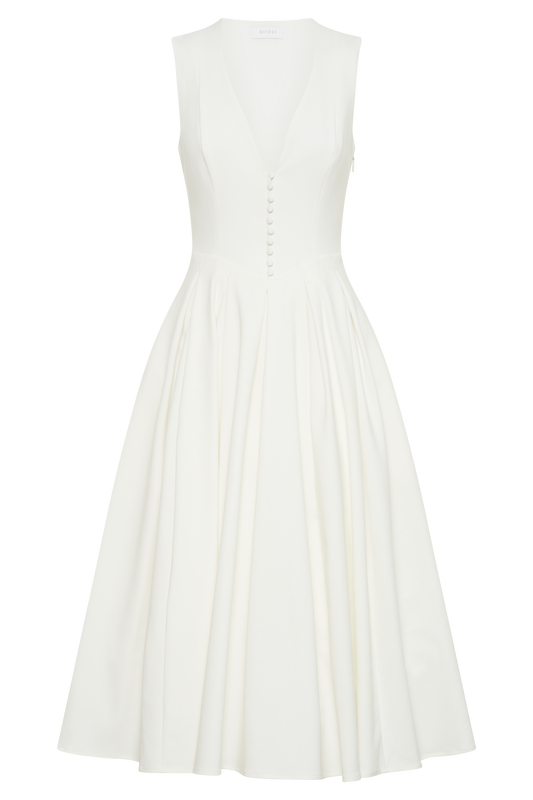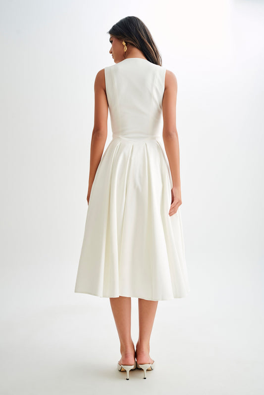 Keely Cotton Sleeveless Midi Dress - White