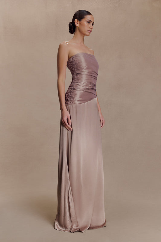 Serena Strapless Taffeta Maxi Dress - Bronze Taupe