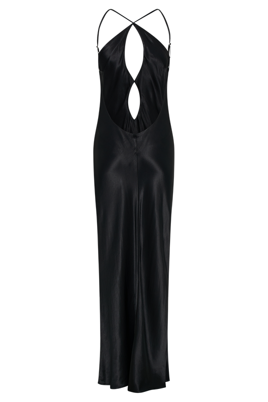 Lucia Satin Cut Out Maxi Dress - Black