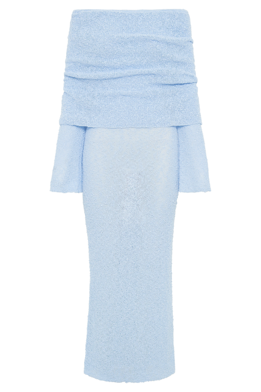 Marisol Off Shoulder Boucle Maxi Dress - Light Blue