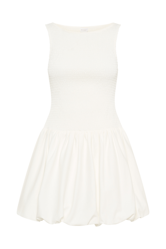 Felicity Shirring Bubble Cotton Mini Dress - White