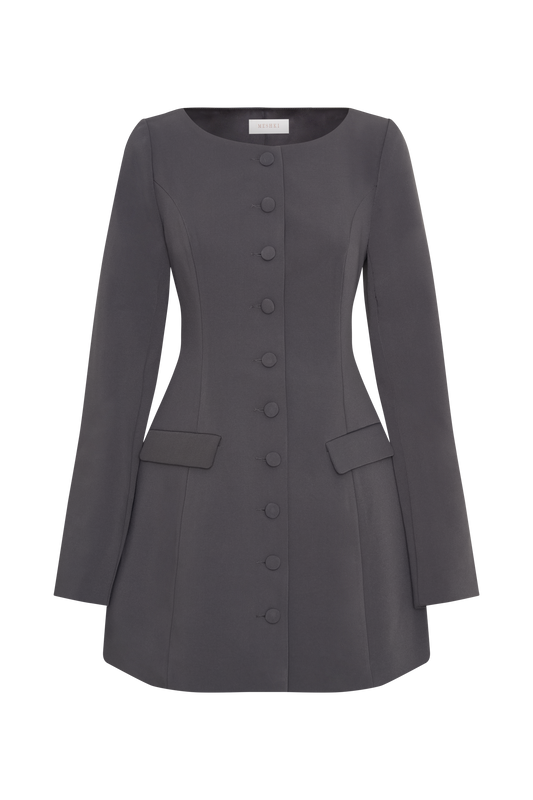 Boat Neck Suiting Mini Dress - Charcoal Grey