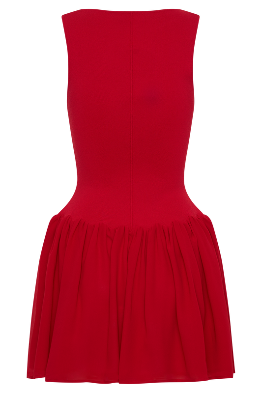 Ashleigh Knit And Chiffon Mini Dress - Red