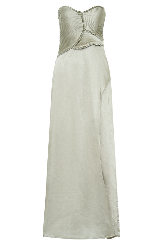 Larissa Satin Maxi Dress With Ruched Petals - Sage