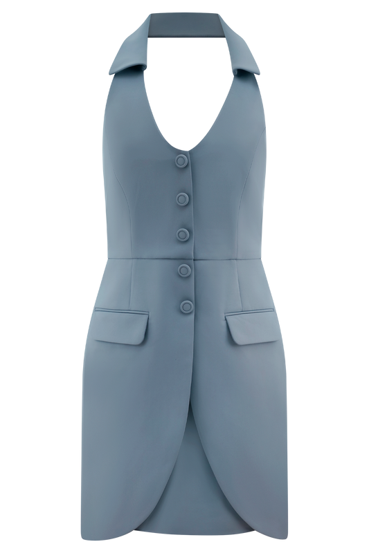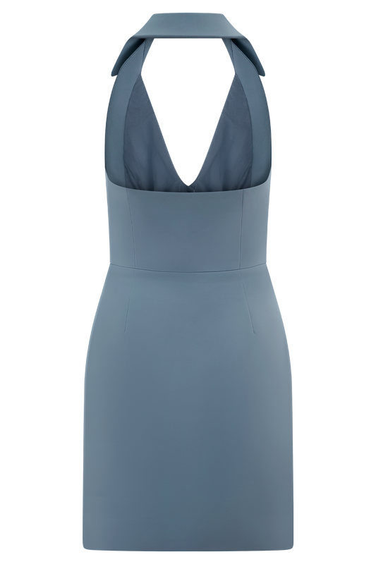 Ruth Cotton Halter Mini Dress - Ocean Blue