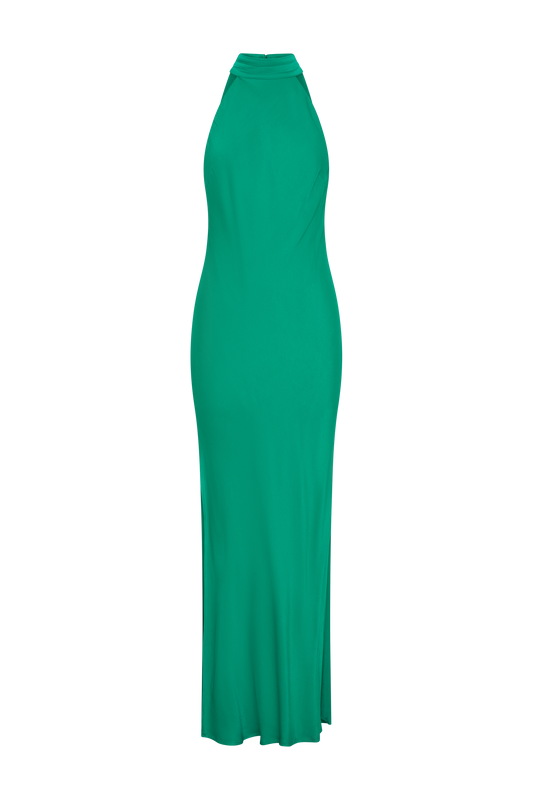 Claire Satin Drape Back Maxi Dress with Split - Green