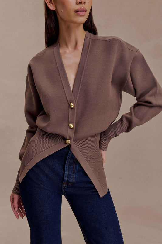 Statement Button Knit Cardigan - Cacao Brown
