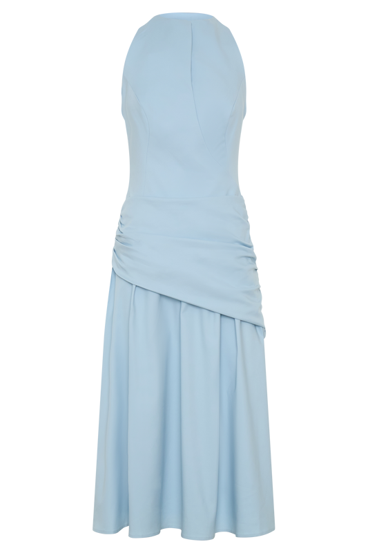 Emily Wrapped Waist Midi Dress - Sky Blue