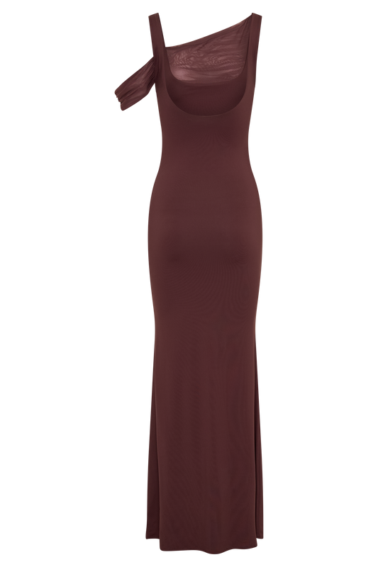 Recycled Nylon And Mesh Sleeveless Maxi Dress - Mahogany