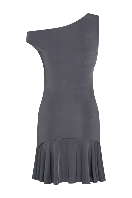 Irving Off Shoulder Slinky Mini Dress - Dark Charcoal