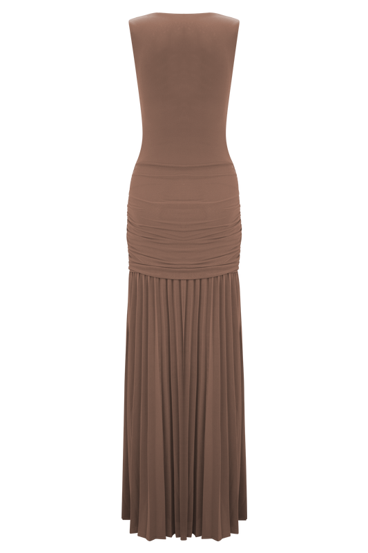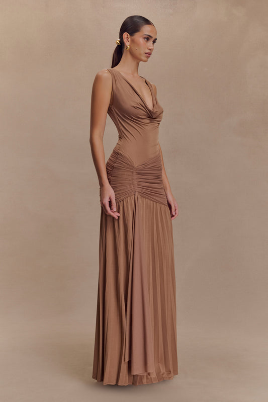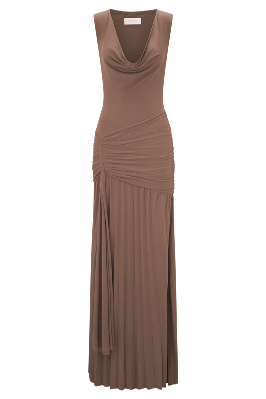 Dania Cowl Neck Slinky Maxi Dress - Mocha Mousse
