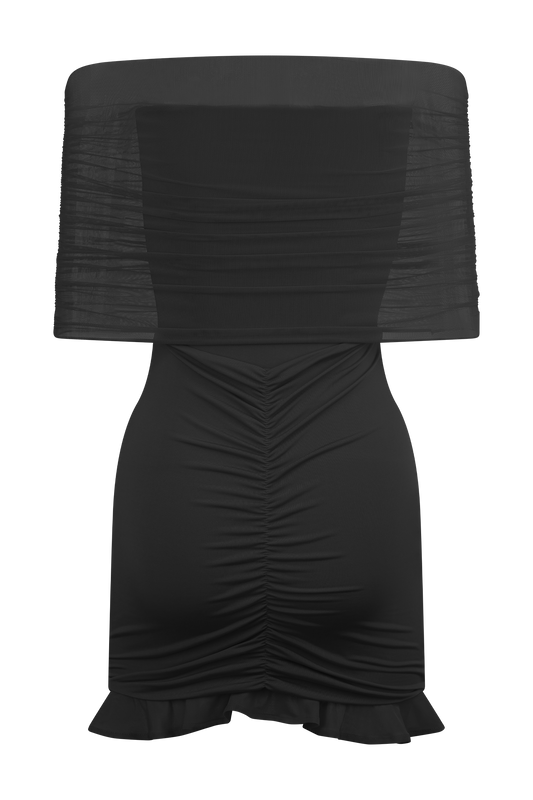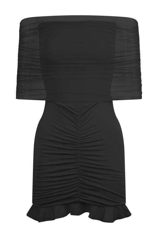 Slinky And Mesh Off Shoulder Mini Dress - Black