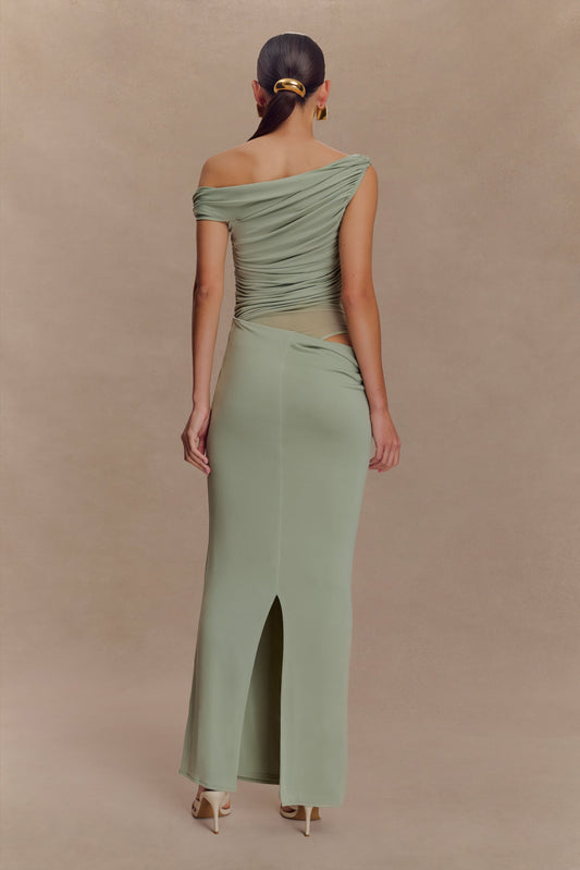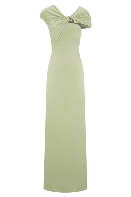 Ashford Asymmetrical Slinky Maxi Dress - Sage