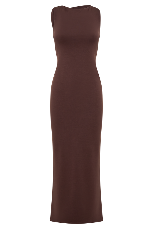 Catelyn Asymmetrical Scuba Jersey Midi Dress - Cacao Brown