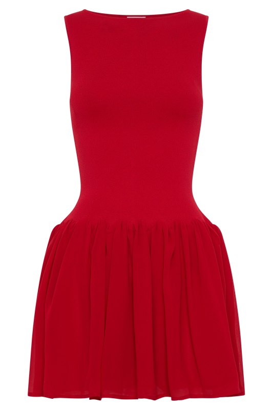 Ashleigh Knit And Chiffon Mini Dress - Red
