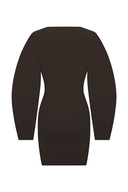 Balloon Sleeve Knit Mini Dress - Dark Chocolate