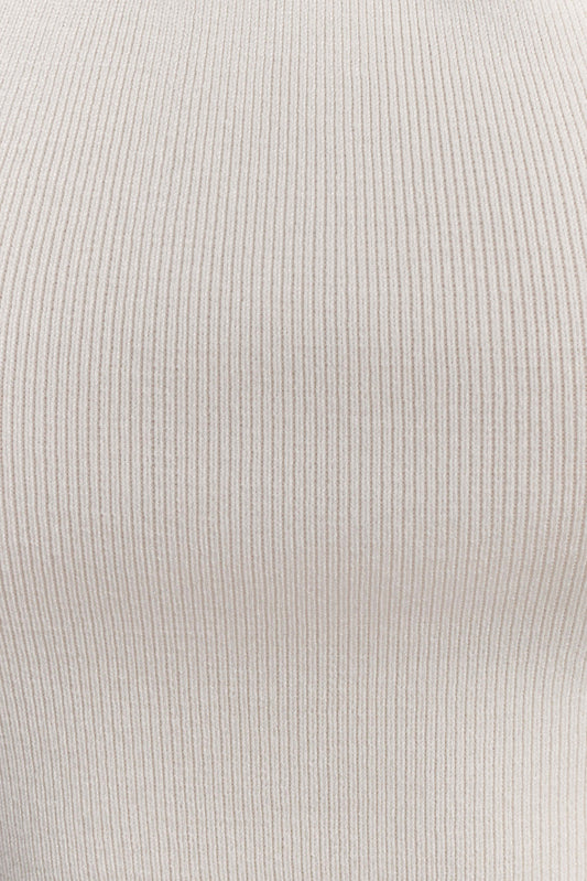 Ribbed Sleeveless Top With Wire Hem - Ivory