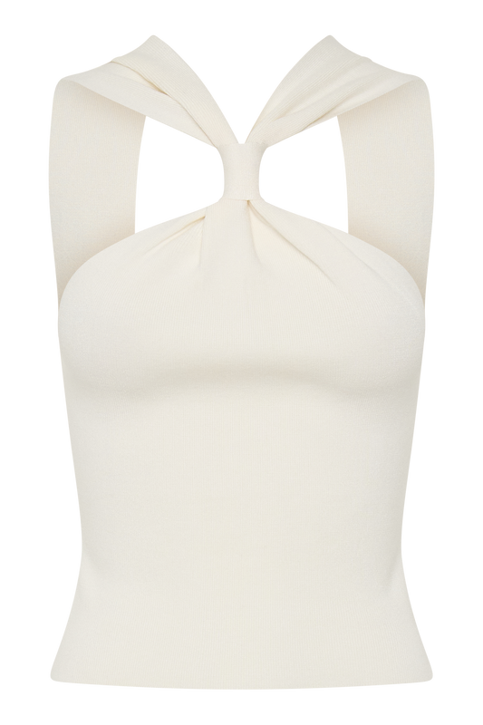 Diya Ribbed Sleeveless Top With Wire Hem - Ivory