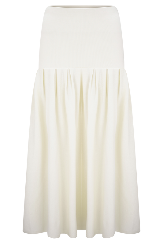 Irene Gathered Knit Maxi Skirt - Ivory