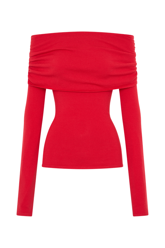 Keaton Strapless Rose Tie Knit Top - Red