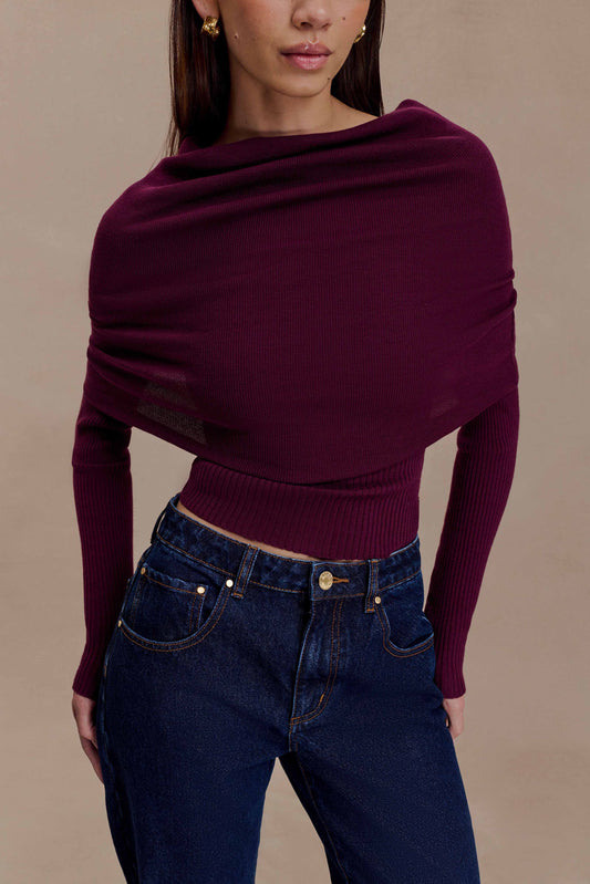 Charlotte Off Shoulder Knit Long Sleeve Top - Merlot