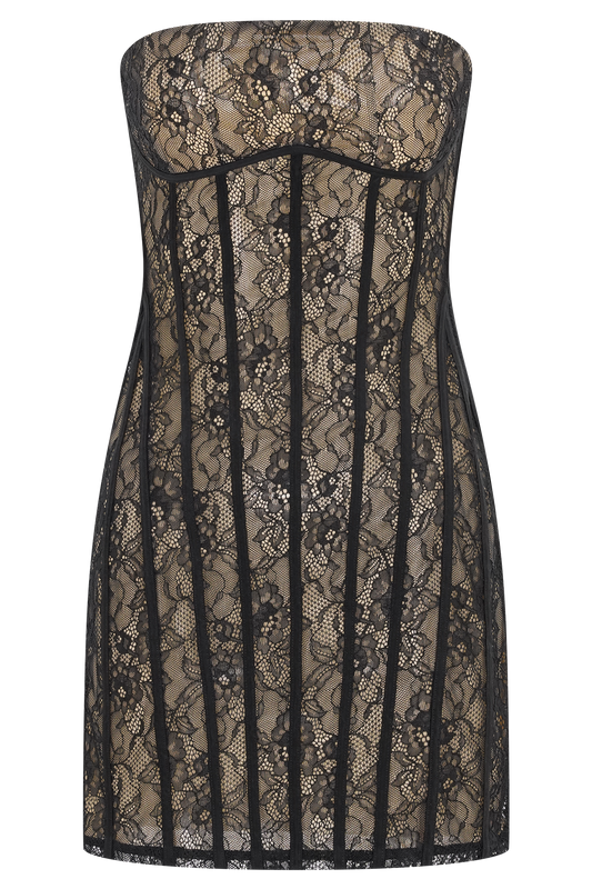 Jeannette Panelled Lace Mini Dress - Black