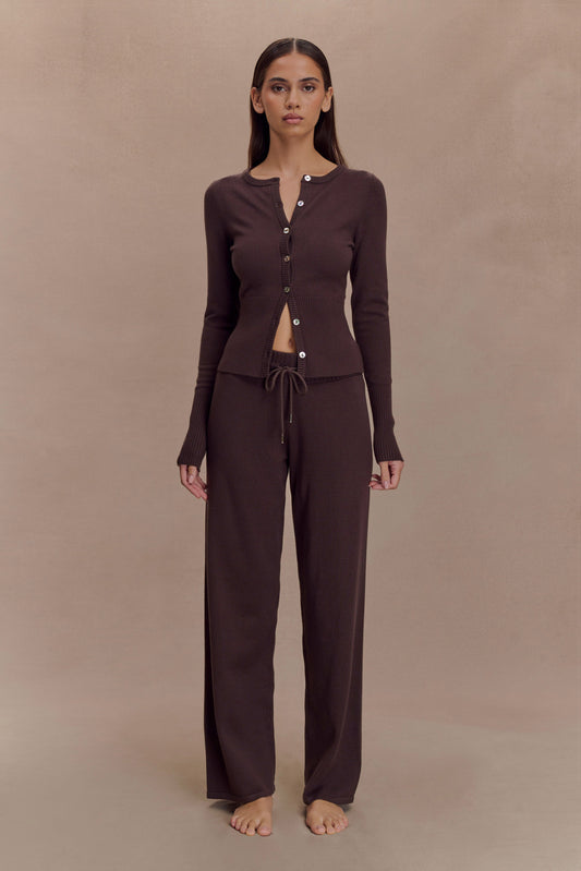 Reese Fitted Knit Cardigan - Dark Chocolate