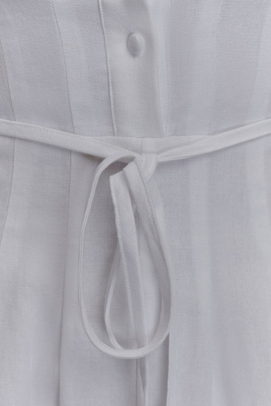 Pintuck Linen Maxi Dress - White