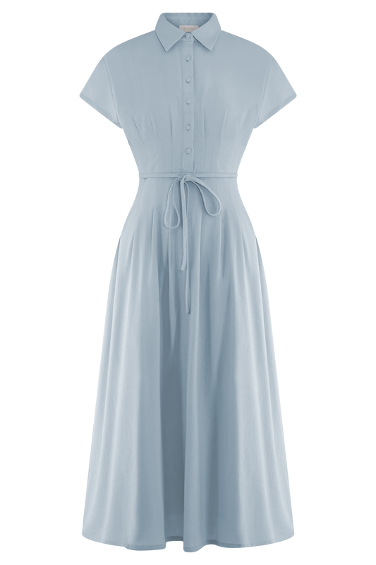 Aysha Buttoned Linen Midi Dress - Cornflower Blue