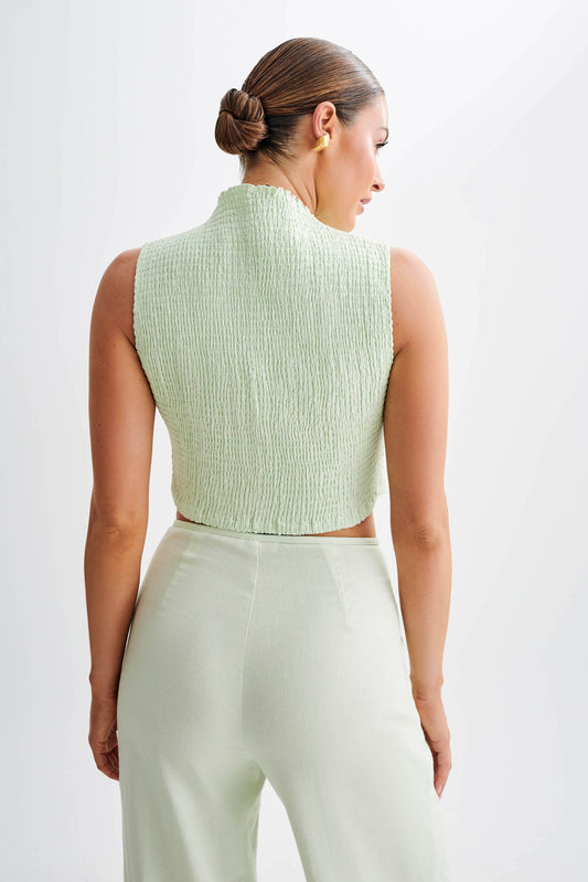 £6959% offEmanuelle Sleeveless Linen Shirring Top - Mint