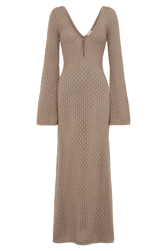 Kayleigh Crochet Fishtail Flare Sleeve Maxi Dress - Taupe