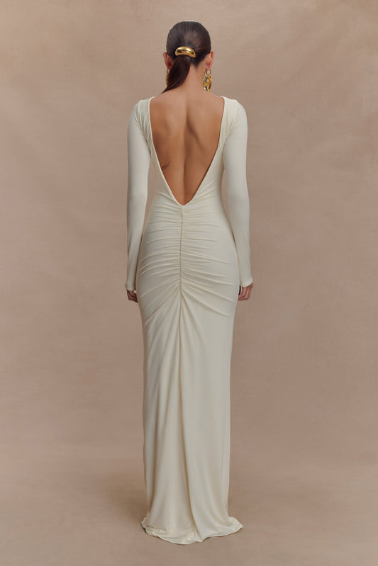 £95-20% Off Sale price £76Unit price / per20% OFF AT CARTLouisa Long Sleeve Slinky Maxi Dress - Ivory