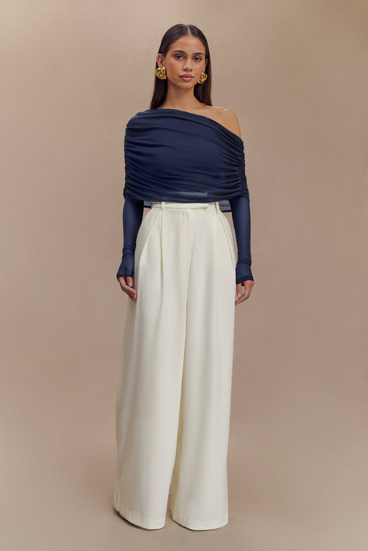 Sheer Mesh Off Shoulder Top - Dark Navy