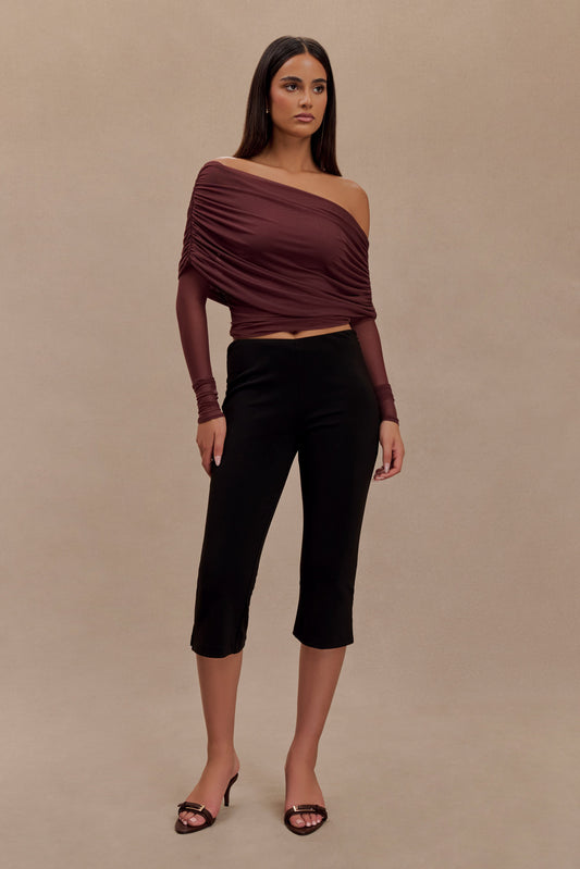 Everly Sheer Mesh Off Shoulder Top - Mahogany