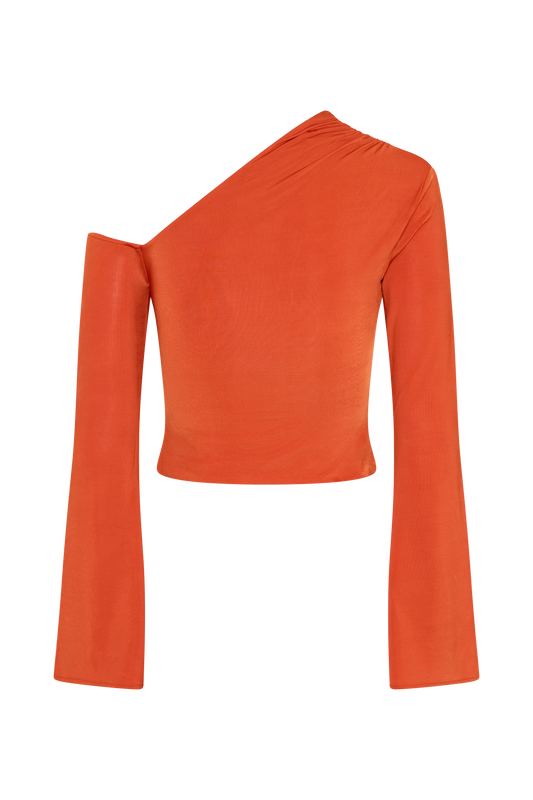 Regular price £45Sale price £45 Regular priceUnit price / perAinsley Asymmetrical Long Sleeve Top With Floral Hardware - Burnt Orange